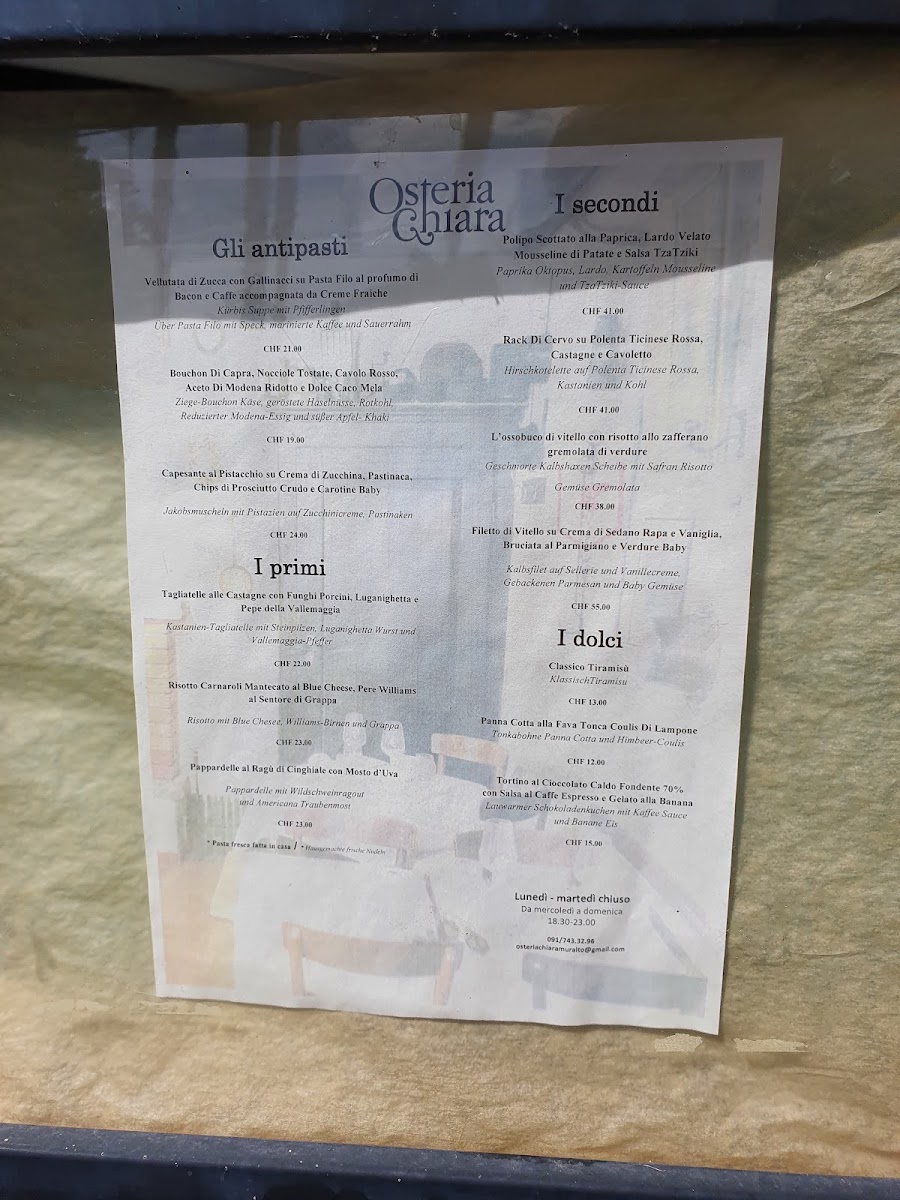 Osteria Chiara Menu